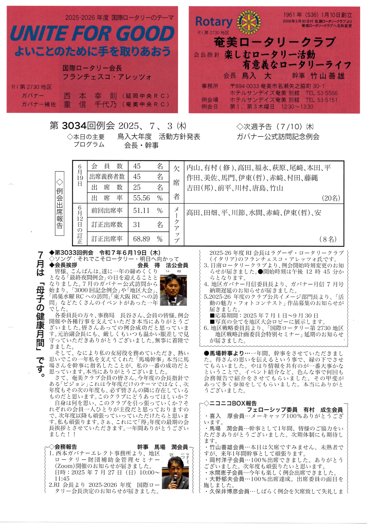 週報 2025年11月19日(木) 第3045回 例会にて配布した週報を掲載いた …