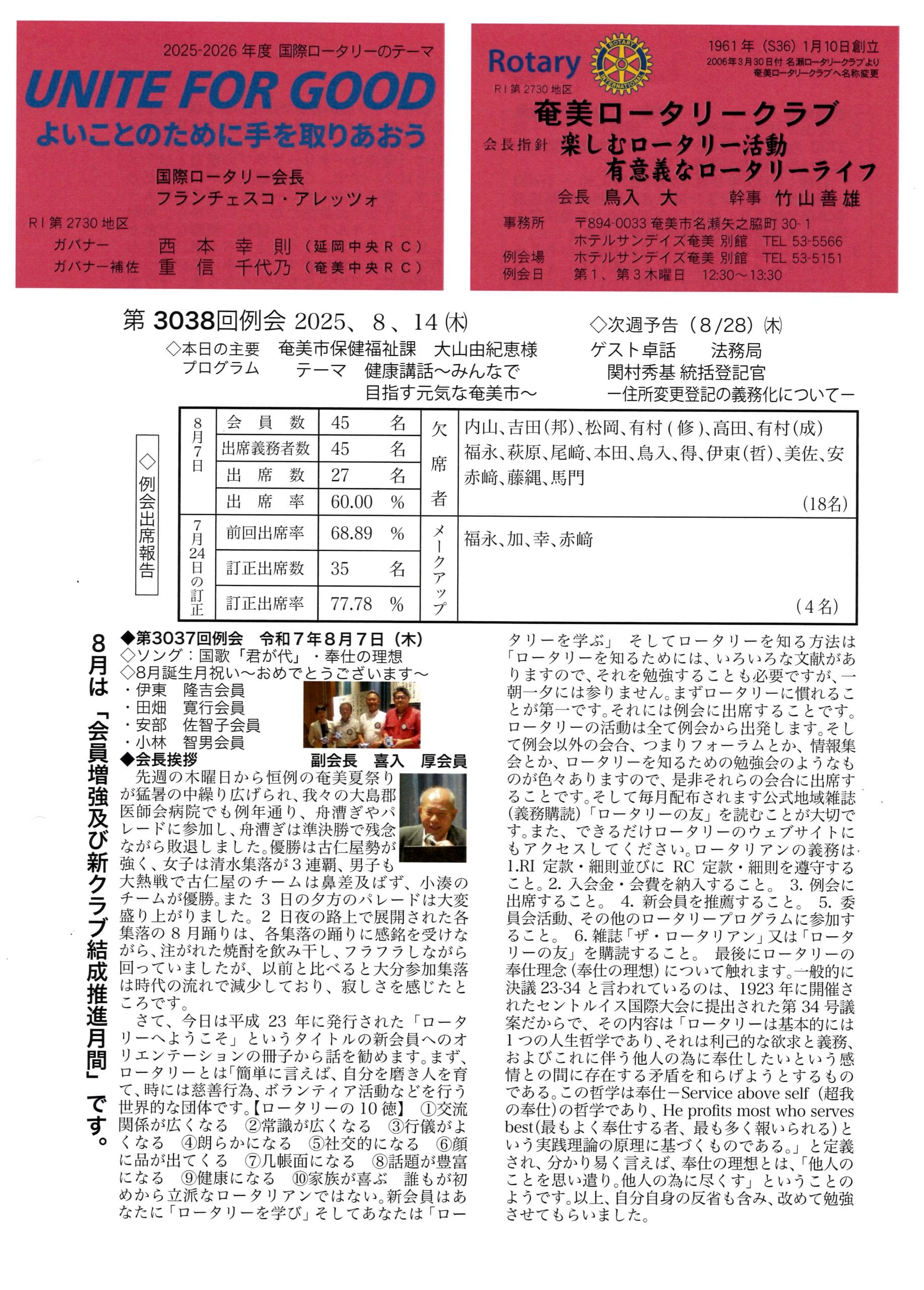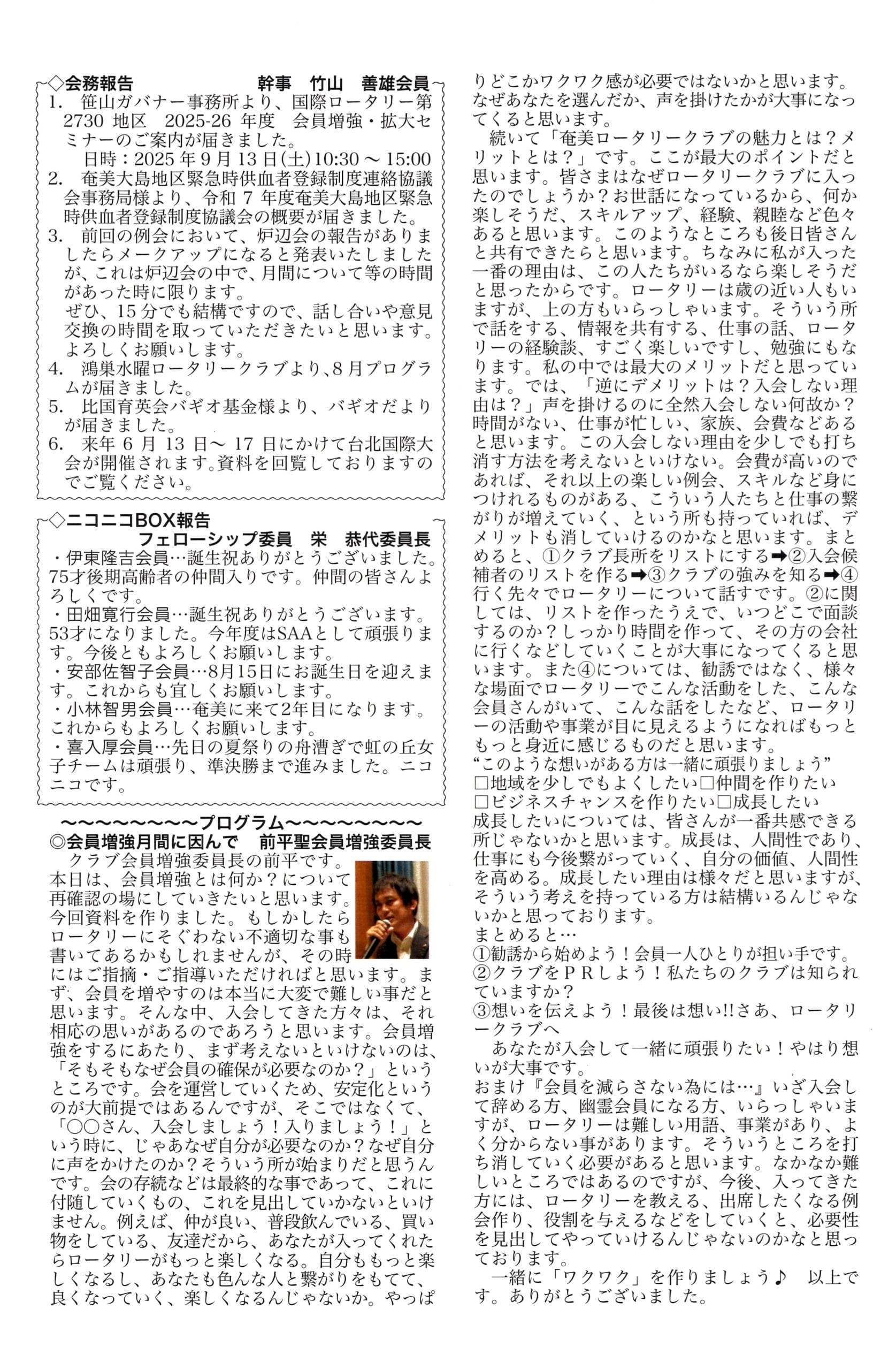 週報 2025年10月2日(木) 第3042回 例会にて配布した週報を掲載いたし …