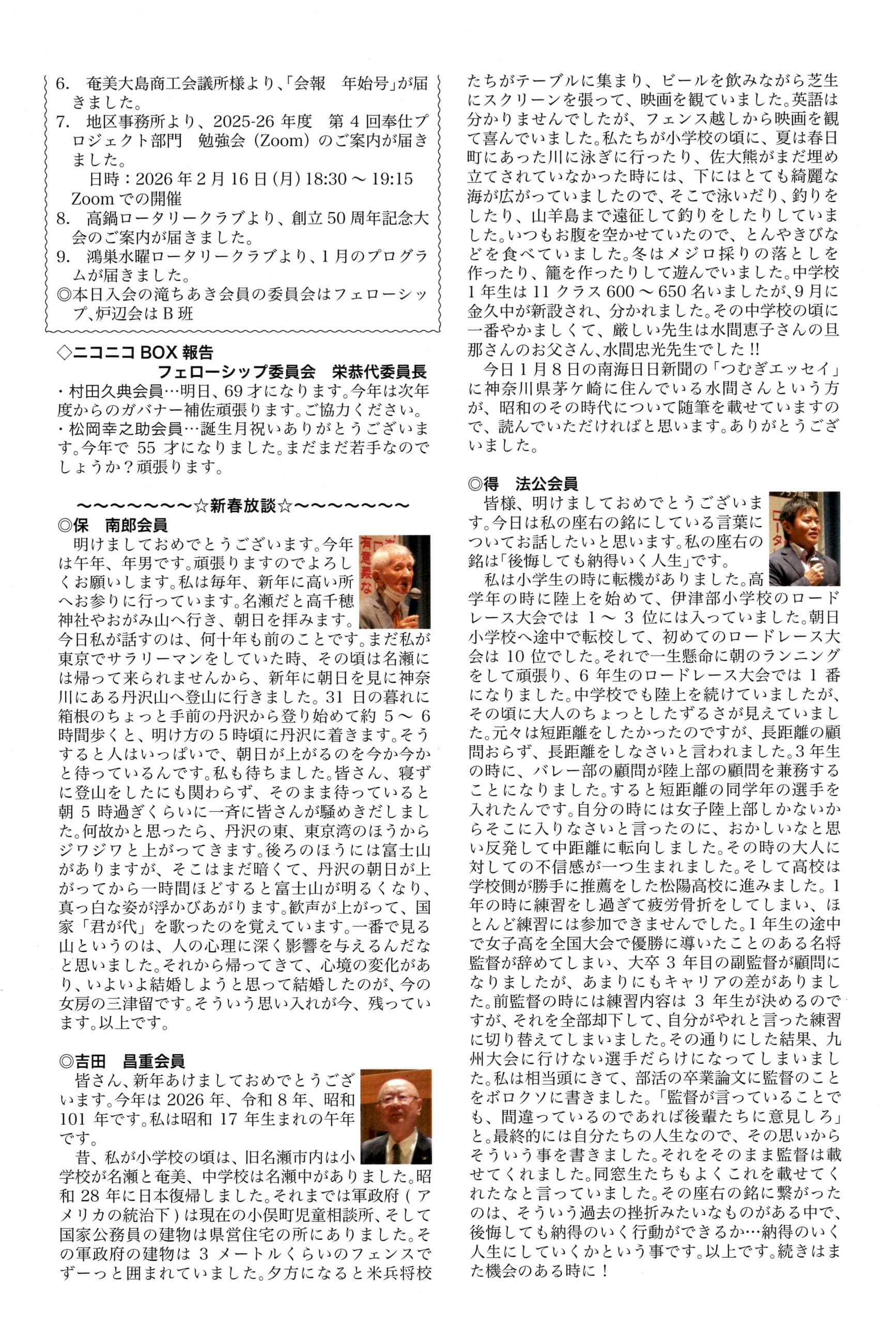 週報 2026年1月8日(木) 第3048回 例会にて配布した週報を掲載いたしま …